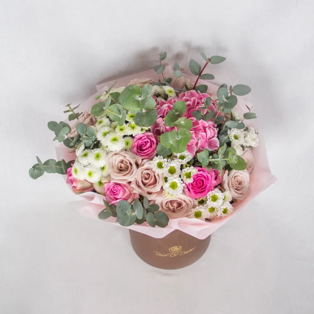 A box arrangement of mix flowers