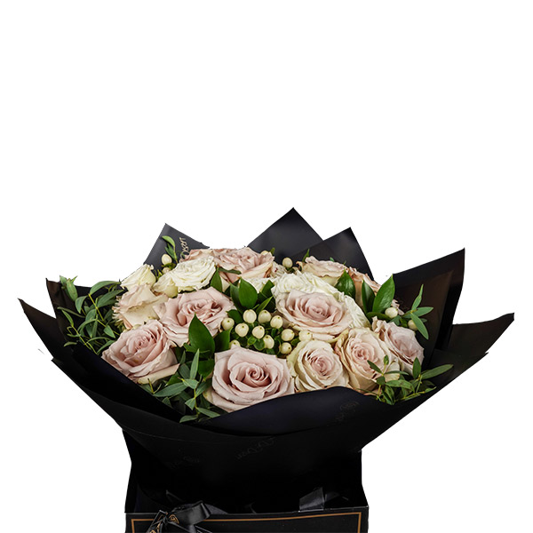 Our signature hand tied bouquet the Rose De Desert Bouquet with Ecuadorian roses and gift wrapping is a perfect gift choice. Dream created for leave a deep impression.
