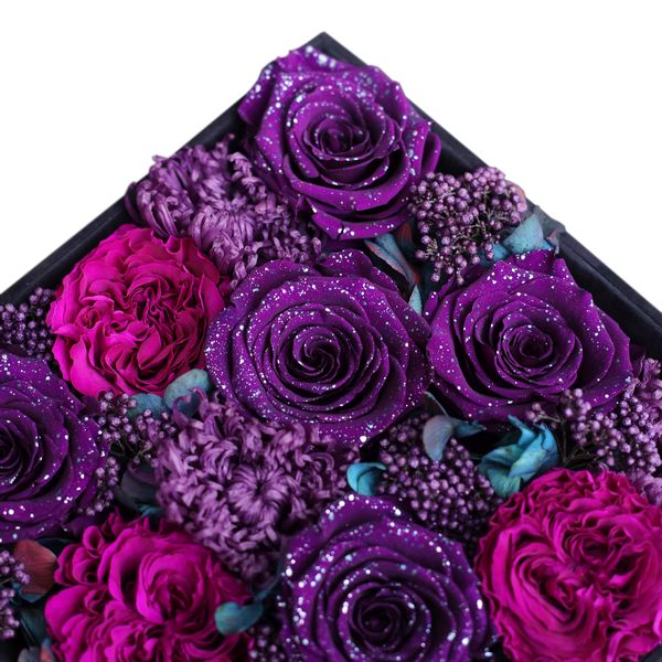 A nice way of representing the wide selection of our Endless flowers. A harmonic mixture of colors makes this box a perfect gift or decoration for a long time. Available in two sizes., in our branded velvet or paper boxes in black or brown colors.