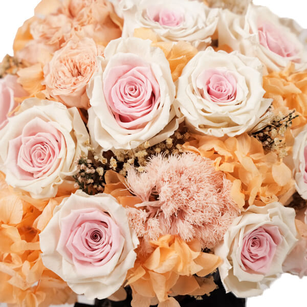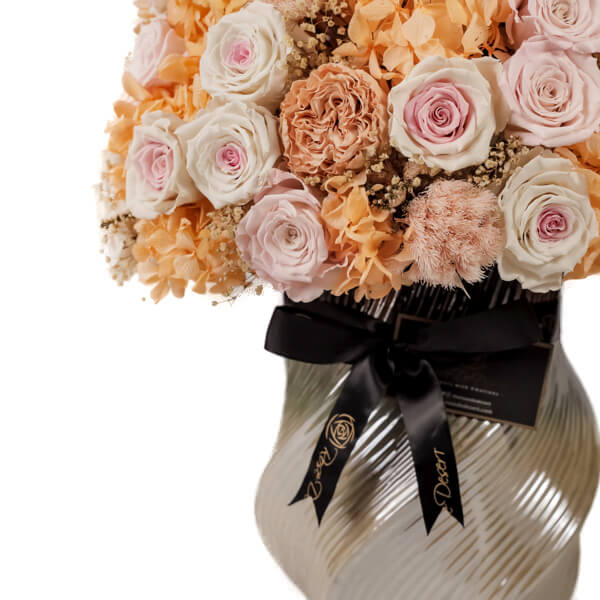 The Gaia collection representing Mother Earth nicely supporting our lovely color selection of Endless Roses and materials. Perfect choice for home decor or gift resting your eyes on the harmonizing pastel color set makes this arrangement special. Available in two sizes.