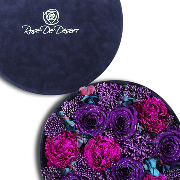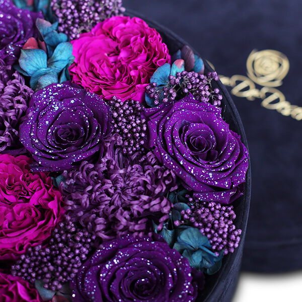 Endless Glory is based on a trendy design choice which is perfectly harmonizing and supporting our wide selection of Endless Flowers. Classic meets with new era of Endless Roses the Galaxy. A harmonic mixture of colors makes this box a perfect gift or decoration for a long time. Available in two sizes., in our branded velvet or paper boxes in black or brown colors.