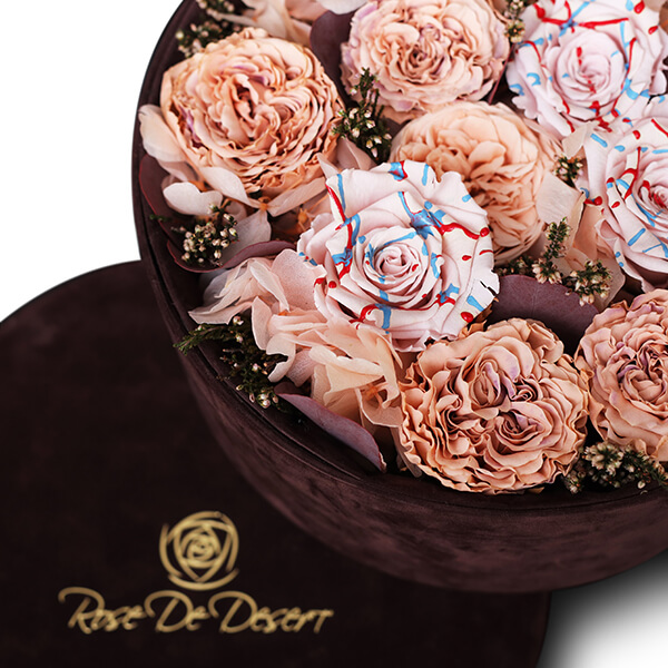 Endless Glory is based on a trendy design choice which is perfectly harmonizing and supporting our wide selection of Endless Flowers. Classic meets with new era of Endless Roses the Festive. A harmonic mixture of colors makes this box a perfect gift or decoration for a long time. Available in two sizes., in our branded velvet or paper boxes in black or brown colors.
