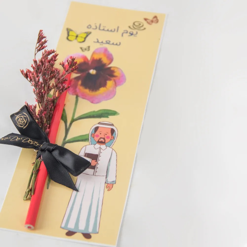 بطاقة يوم المعلم مع الزهور المجففة والأقلام الملونة هدية مثالية للمعلمين