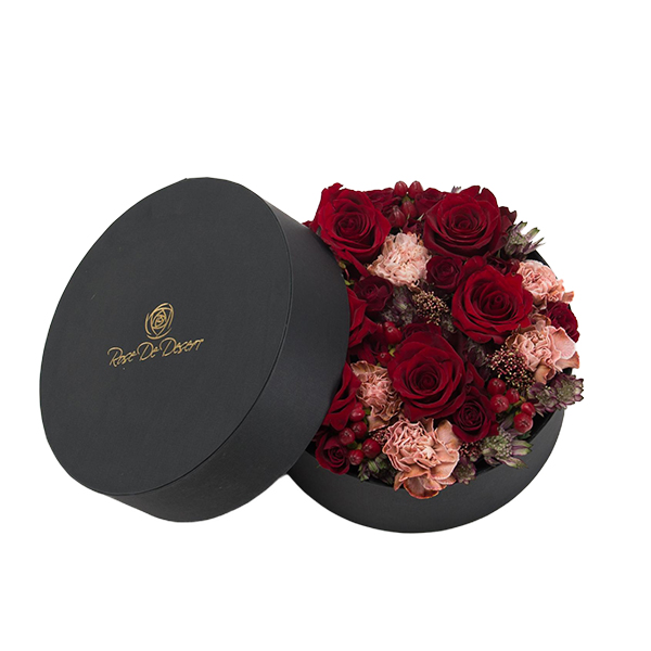 “A stunning bouquet of red roses wrapped in iconic Dior print paper, creating a luxurious and unforgettable gift.”